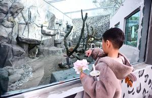 (251115) — XINING, 15 noviembre, 2025 (Xinhua) — Un niño toma fotografías de un leopardo de las nieves en el Parque de Vida Silvestre de Xining, en la provincia de Qinghai, en el noroeste de China, el 15 de noviembre de 2025. La casa del leopardo del Parque de Vida Silvestre de Xining reabrió al público tras un mes de renovación. (Xinhua/Qi Zhiyue) (oa) (da)