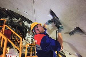 (251216) -- SHANGHAI, 16 diciembre, 2025 (Xinhua) -- Un trabajador aprieta un perno en el sitio de construcción del túnel Chongming-Taicang, parte del ferrocarril de alta velocidad Shanghai-Chongqing-Chengdu, bajo el río Yangtze, el 16 de diciembre de 2025. La excavación en curso del túnel bajo el río Yangtze, llevada a cabo por la mayor máquina tuneladora con escudo de gran diámetro del mundo para ferrocarriles de alta velocidad, la "Linghang", desarrollada de manera independiente por China, superó el martes la marca de los 10.000 metros, lo que sentó una base sólida para la finalización del túnel. (Xinhua/Fang Zhe) (oa) (ah) (vf)