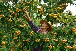 (250906) -- BEIJING, 6 septiembre, 2025 (Xinhua) -- Imagen del 5 de septiembre de 2025 de una agricultora recolectando espinos en un jardín, en la aldea de Banshang, en la ciudad de Zaozhuang de la provincia de Shandong, en el este de China. El Rocío Blanco, término solar que significa que el rocío se condensa y empieza a hacer frío, cae el 7 de septiembre de este año. (Xinhua/Liu Mingxiang) (jg) (da)