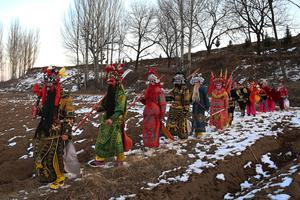 (250212) -- LONGXIAN, 12 febrero, 2025 (Xinhua) -- Imagen del 9 de febrero de 2025 de artistas asistiendo a un desfile Shehuo, en el distrito de Longxian de la ciudad de Baoji, en la provincia de Shaanxi, en el noroeste de China. El distrito de Longxian, denominado como Long Zhou en los viejos tiempos, es conocido por el desfile Shehuo local, que presenta una interpretación auténtica e inclusiva y un maquillaje facial simple pero exquisito. El desfile Shehuo, una interpretación consagrada por el tiempo que goza de una popularidad generalizada en las áreas rurales de China, se originó a partir de antiguas actividades de sacrificio para pedir por una buena cosecha hace aproximadamente 2.000 años (Xinhua/Zou Jingyi) (jg) (da) (vf)