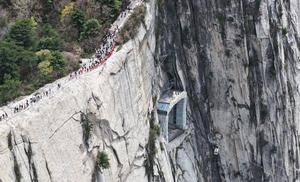 CHINA-SHAANXI-MONTAÑA HUASHAN-TELEFERICO TURISTICO-TRABAJADOR DE MANTENIMIENTO