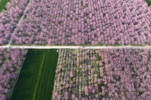 (250319) — XI’AN, 19 marzo, 2025 (Xinhua) — Vista aérea tomada con un dron el 18 de marzo de 2025 de flores de ciruelo en una plantación, en el distrito de Huyi de Xi’an, en la provincia de Shaanxi, en el noroeste de China. (Xinhua/Shao Rui) (ah) (vf)