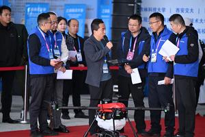 (251026) -- YANGLING, 26 octubre, 2025 (Xinhua) -- Un técnico presenta un dron agrícola a los jueces en una competencia para robots agrícolas durante la 32 Feria de Alta Tecnología de Yangling de China, en Yangling, en la provincia de Shaanxi, en el noroeste de China, el 26 de octubre de 2025. La feria de alta tecnología agrícola comenzó aquí el sábado, destacando una competencia para robots agrícolas así como una exposición en maquinaría agrícola inteligente. (Xinhua/Li Yibo) (rtg) (ah)
