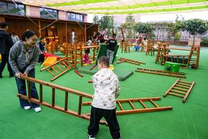 (251203) -- JINAN, 3 diciembre, 2025 (Xinhua) -- Imagen del 11 de octubre de 2025 de niños y maestros reorganizando las instalaciones de juego en el Jardín de Niños de Educación Especial Experimental del Distrito de Yinan, en la ciudad de Linyi, en la provincia de Shandong, en el este de China. La educación inclusiva de personas con discapacidad garantiza que los estudiantes con discapacidad aprendan junto con sus compañeros sin discapacidad en entornos comunes, a través del apoyo y las adaptaciones necesarias. (Xinhua/Zhu Zheng) (ah) (ra) (ce)