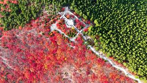 (251103) -- JINAN, 3 noviembre, 2025 (Xinhua) -- Vista aérea tomada con un dron del paisaje otoñal de la montaña Xiezi, en la ciudad de Jinan, en la provincia de Shandong, en el este de China, el 3 de noviembre de 2025. (Xinhua/Guo Xulei) (oa) (ah) (ce)