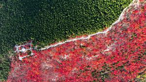 (251103) -- JINAN, 3 noviembre, 2025 (Xinhua) -- Vista aérea tomada con un dron del paisaje otoñal de la montaña Xiezi, en la ciudad de Jinan, en la provincia de Shandong, en el este de China, el 3 de noviembre de 2025. (Xinhua/Guo Xulei) (oa) (ah) (ce)