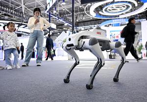 (260418) -- QINGDAO, 18 abril, 2026 (Xinhua) -- Un perro robótico equipado con LiDAR es visto durante la 6ª Conferencia Sobre el Futuro del Radar, en Qingdao, en la provincia de Shandong, en el este de China, el 18 de abril de 2026. La conferencia se inauguró aquí el sábado y se extenderá hasta el 20 de abril, presentando las últimas tecnologías y productos relacionados con los radares. (Xinhua/Li Ziheng) (jg) (da)