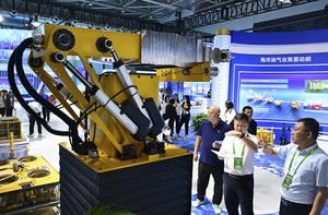 (250908) -- QINGDAO, 8 septiembre, 2025 (Xinhua) -- Visitantes observan las piezas exhibidas durante la Exposición Marina de Asia Oriental 2025, en Qingdao, en la provincia de Shandong, en el este de China, el 8 de septiembre de 2025. Más de 450 empresas e instituciones participaron en la exposición. (Xinhua/Li Ziheng) (rtg) (ah) (vf)