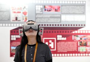 (251016) -- QINGDAO, 16 octubre, 2025 (Xinhua) -- Una asistente prueba un dispositivo de realidad virtual en la décima Exposición Internacional de los Derechos de Autor de China, en Qingdao, en la provincia de Shandong, en el este de China, el 16 de octubre de 2025. Con el tema "La Inteligencia Digital Lidera el Futuro, los Derechos de Autor Promueven el Desarrollo Innovador", la décima Exposición Internacional de los Derechos de Autor de China y el Foro Internacional de los Derechos de Autor 2025 se inauguraron el jueves en Qingdao. (Xinhua/Li Ziheng) (da) (ra) (vf)