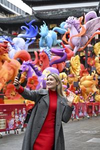 (260216) -- SHANGHAI, 16 febrero, 2026 (Xinhua) -- Imagen del 6 de febrero de 2026 de Aleksandra Antonenko grabando videos cortos en el centro comercial Jardín Yuyuan, en Shanghai, en el este de China. Aleksandra Antonenko se mudó de Rusia para realizar su doctorado en la Universidad Jiao Tong de Shanghai en 2022. También comenzó a mostrar el encanto de la vida cotidiana en China al mundo con videos cortos. (Xinhua/Chen Haoming) (rtg) (ah) (vf)