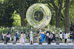 (250418) -- SHANGHAI, 18 abril, 2025 (Xinhua) -- Personas se divierten en una sede de la Exposición Internacional de Flores de Shanghai 2025, en el distrito de Huangpu de Shanghai, en el este de China, el 18 de abril de 2025. La Exposición Internacional de Flores de Shanghai 2025 se inauguró el viernes con dos sedes principales, cinco subsedes y 15 lugares de exposición en toda la ciudad. (Xinhua/Wang Xiang) (oa) (ra) (ce)