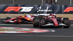 (250322) -- SHANGHAI, 22 marzo, 2025 (Xinhua) -- El piloto monegasco de la escudería Ferrari, Charles Leclerc (d), y el piloto británico de la escudería Ferrari, Lewis Hamilton, compiten durante la clasificación del Gran Premio de China de Fórmula 1 en el Circuito Internacional de Shanghai, en Shanghai, en el este de China, el 22 de marzo de 2025. (Xinhua/Xia Yifang) (rtg) (da)