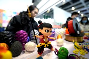 (250317) -- SHANGHAI, 17 marzo, 2025 (Xinhua) -- Una figura de Nezha impresa en 3D es vista en la TCT Asia 2025 en el Centro Nacional de Exposiciones y Convenciones (Shanghai), en Shanghai, en el este de China, el 17 de marzo de 2025. La TCT Asia 2025, un evento de tres días que presenta la impresión 3D industrial y la fabricación aditiva, comenzó aquí el lunes. (Xinhua/Zhang Jiansong) (rtg)