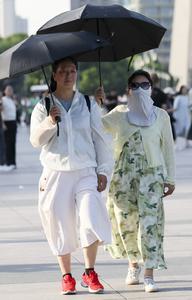 (250704) -- SHANGHAI, 4 julio, 2025 (Xinhua) -- Personas caminan con sombrillas durante el clima cálido, en Shanghai, en el este de China, el 4 de julio de 2025. Shanghai emitió una alerta amarilla por altas temperaturas el viernes. (Xinhua/Wang Xiang) (rtg) (ra) (ce)