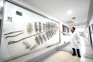 (251120) -- SHANGHAI, 20 noviembre, 2025 (Xinhua) -- Imagen del 19 de noviembre de 2025 de Ge Binjie, curador del Herbario Chenshan de Shanghai, presentando una especie de Sphaeropteris lepifera, en el Centro Nacional de Recursos de Germoplasma de Plantas Silvestres del Jardín Botánico Chenshan de Shanghai, en Shanghai, en el este de China. Recientemente, el personal confirmó que el número total de semillas viables conservadas en el Centro Nacional de Recursos de Germoplasma de Plantas Silvestres del Jardín Botánico Chenshan de Shanghai ha superado los 100 millones. (Xinhua/Zhang Jiansong) (da) (ra) (ce)
