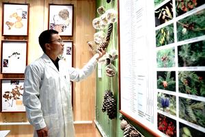 (251120) -- SHANGHAI, 20 noviembre, 2025 (Xinhua) -- Imagen del 19 de noviembre de 2025 de Ge Binjie, curador del Herbario Chenshan de Shanghai, presentando la diversidad de gimnospermas en el Centro Nacional de Recursos de Germoplasma de Plantas Silvestres del Jardín Botánico Chenshan de Shanghai, en Shanghai, en el este de China. Recientemente, el personal confirmó que el número total de semillas viables conservadas en el Centro Nacional de Recursos de Germoplasma de Plantas Silvestres del Jardín Botánico Chenshan de Shanghai ha superado los 100 millones. (Xinhua/Zhang Jiansong) (da) (ra) (ce)