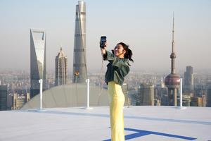 (250415) -- SHANGHAI, 15 abril, 2025 (Xinhua) -- Imagen del 14 de abril de 2025 de una visitante tomándose una fotografía en The Stage, una nueva plataforma de observación en lo alto de White Magnolia Plaza, en Shanghai, en el este de China. La plataforma de observación se abrió al público el martes, donde los visitantes pueden obtener una vista panorámica de 360 grados del centro de Shanghai a 320 metros de altura. (Xinhua/Liu Ying) (oa) (ah) (vf)