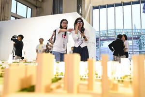 (250930) -- SHANGHAI, 30 septiembre, 2025 (Xinhua) -- Personas visitan una exposición de la Temporada de Arte del Espacio Urbano de Shanghai 2025, en Shanghai, en el este de China, el 30 de septiembre de 2025. Una exposición de diseño de ciencia y tecnología, una muestra de arte, un espectáculo de drones y un espectáculo de luces están programadas para llevarse a cabo durante el evento. (Xinhua/Chen Haoming) (jg) (ra) (vf)