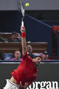 (251003) -- SHANGHAI, 3 octubre, 2025 (Xinhua) -- Novak Djokovic sirve la pelota durante el partido de treintaidosavos de final de individuales masculinos entre Novak Djokovic, de Serbia, y Borna Coric, de Croacia, en el torneo de tenis Masters de Shanghai del ATP World Tour, en Shanghai, en el este de China, el 3 de octubre de 2025. (Xinhua/Chen Haoming) (oa) (ra) (vf)