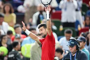 (251009) -- SHANGHAI, 9 octubre, 2025 (Xinhua) -- Novak Djokovic saluda a los espectadores al término de los cuartos de final de individuales masculinos entre Novak Djokovic, de Serbia, y Zizou Bergs, de Bélgica, en el torneo de tenis Masters de Shanghai del ATP World Tour, en Shanghai, en el este de China, el 9 de octubre de 2025. (Xinhua/Ding Ting) (rtg) (ra) (ce)