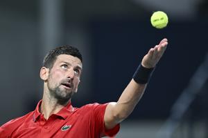 (251011) — SHANGHAI, 11 octubre, 2025 (Xinhua) — Novak Djokovic sirve la pelota durante la semifinal de individuales masculinos entre Novak Djokovic, de Serbia, y Valentin Vacherot, de Mónaco, en el torneo de tenis Masters de Shanghai del ATP World Tour, en Shanghai, en el este de China, el 11 de octubre de 2025. (Xinhua/Chen Haoming) (rtg) (da)