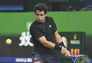 (251007) -- SHANGHAI, 7 octubre, 2025 (Xinhua) -- Jaume Munar compite durante el partido de octavos de final de individuales masculinos entre Novak Djokovic, de Serbia, y Jaume Munar, de España, en el torneo de tenis Masters de Shanghai del ATP World Tour, en Shanghai, en el este de China, el 7 de octubre de 2025. (Xinhua/Chen Haoming) (oa) (ah) (ce)