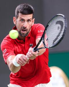 (251009) -- SHANGHAI, 9 octubre, 2025 (Xinhua) -- Novak Djokovic devuelve la pelota durante los cuartos de final de individuales masculinos entre Novak Djokovic, de Serbia, y Zizou Bergs, de Bélgica, en el torneo de tenis Masters de Shanghai del ATP World Tour, en Shanghai, en el este de China, el 9 de octubre de 2025. (Xinhua/Ding Ting) (rtg) (ra) (ce)