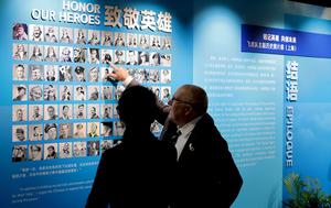 mientras observan los objetos en la Exposición Fotográfica de los Tigres Voladores, en Shanghai, en el este de China, el 8 de julio de 2025. Bajo el lema "Recordando a los héroes y creando el futuro juntos", la exposición se inauguró aquí el martes, mostrando cientos de fotografías valiosas, así como otros artículos de importancia histórica aportados por los veteranos de los Tigres Voladores. (Xinhua/Fang Zhe) (oa) (ah) (vf)