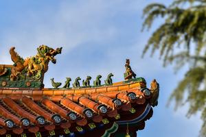 CHINA-SHANXI-ARQUITECTURA ANTIGUA-TECHO-CRIATURAS AUSPICIOSAS