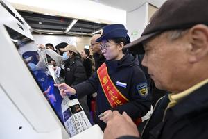 (250222) -- TAIYUAN, 22 febrero, 2025 (Xinhua) -- Una trabajadora ayuda a un pasajero a comprar un boleto en la estación Xutandongjie de la Línea 1 de Tránsito Ferroviario de Taiyuan, en Taiyuan, en la provincia de Shanxi, en el norte de China, el 22 de febrero de 2025. La Línea 1 de Tránsito Ferroviario de Taiyuan de Shanxi fue inaugurada el sábado. Con una longitud total de 28,737 kilómetros y 24 estaciones, la línea conecta múltiples ferrocarriles, autopistas y centros de aviación. (Xinhua/Yang Chenguang) (oa) (da)