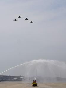 (250912) — SHENYANG, 12 septiembre, 2025 (Xinhua) — Un avión de combate J-20 de la Fuerza Aérea del Ejército Popular de Liberación de China que transporta los restos de los mártires de los Voluntarios del Pueblo Chino (VPCh) pasa a través de un saludo de agua en el Aeropuerto Internacional Taoxian de Shenyang, en la provincia de Liaoning, en el noreste de China, el 12 de septiembre de 2025. Los restos de 30 soldados caídos de los VPCh que perdieron la vida durante la Guerra de Resistencia contra la Agresión de Estados Unidos y de Ayuda a Corea (1950-1953) fueron repatriados a China el viernes desde la República de Corea. (Xinhua/Yang Pan) (jg) (da) (vf)