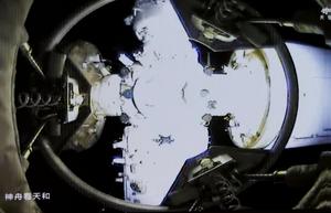(250424) -- BEIJING, 24 abril, 2025 (Xinhua) -- Imagen capturada en el Centro de Control Aeroespacial de Beijing el 24 de abril de 2025 de la nave espacial tripulada Shenzhou-20 acoplándose con el módulo central Tianhe de la estación espacial. La nave espacial tripulada Shenzhou-20 de China se acopló exitosamente a la combinación de la estación espacial el jueves por la noche, anunció la Agencia de Vuelos Espaciales Tripulados de China (CMSA, siglas en inglés). La nave espacial tuvo un encuentro y acoplamiento rápidos y automatizados con el puerto radial del módulo central Tianhe de la estación espacial a las 23:49 (hora de Beijing). El proceso completo se llevó a cabo en cerca de 6,5 horas, dijo la CMSA. Posteriormente, el trío de astronautas a bordo de la nave espacial entrará en el módulo Tianhe, en tanto que los tripulantes de la Shenzhou-19 ya están listos para su arribo. La nave espacial, encima de un cohete portador Gran Marcha-2F, despegó horas antes el jueves del Centro de Lanzamiento de Satélites de Jiuquan, en el noroeste de China.(Xinhua/Jin Liwang) (rtg) (ra) (vf)