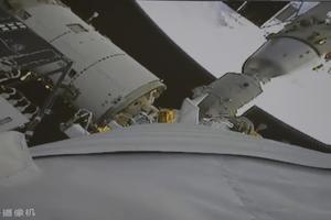 (251125) -- BEIJING, 25 noviembre, 2025 (Xinhua) -- Imagen en tiempo real capturada en el Centro de Control Aeroespacial de Beijing el 25 de noviembre de 2025 de la nave espacial Shenzhou-22 acoplándose con la combinación de la estación espacial. La nave espacial china Shenzhou-22 se acopló con éxito el martes con la combinación de la estación espacial del país, informó la Agencia de Vuelos Espaciales Tripulados de China. (Xinhua/Wang Chuntao) (jg) (ra) (ce)