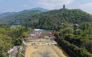 (260403) -- DUJIANGYAN, 3 abril, 2026 (Xinhua) -- Imagen tomada con un dron el 3 de abril de 2026 de personas participando en un festival de liberación de agua llevado a cabo en Dujiangyan, en la provincia de Sichuan, en el suroeste de China. El sistema de riego de Dujiangyan, caracterizado por la desviación de agua sin represas, fue construido en el año 256 a. de C. y es el proyecto de conservación de agua más antiguo y único que se conserva en el mundo, que ha resistido las pruebas de desastres naturales como inundaciones y terremotos, y todavía se utiliza en la actualidad. (Xinhua/Jiang Hongjing) (rtg) (ra) (ce)