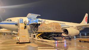 (250426) -- CHENGDU, 26 abril, 2025 (Xinhua) -- Mercancías son cargadas en un avión con destino a Dubai en los Emiratos Arabes Unidos en el Aeropuerto Internacional Shuangliu de Chengdu, en Chengdu, en la provincia de Sichuan, en el suroeste de China, el 26 de abril de 2025. El viernes fueron presentadas 14 nuevas rutas internacionales de pasajeros y carga que conectan Chengdu, la capital de la provincia de Sichuan, en el suroeste de China, con 13 destinos globales, de acuerdo con Sichuan Province Airport Group Co., Ltd. Los 13 destinos globales incluyen París, Madrid, Atenas, Dubai, así como Tokio, Bali y Penang. (Xinhua/Air China Cargo) (jg) (da)