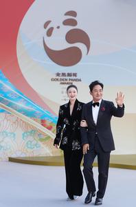 (250914) -- CHENGDU, 14 septiembre, 2025 (Xinhua) -- Imagen del 13 de septiembre de 2025 de la actriz Jiang Xin (i) y el actor Guo Xiaodong llegando a la segunda ceremonia de los Premios Golden Panda, en Chengdu, en la provincia de Sichuan, en el suroeste de China. La segunda edición de los Premios Golden Panda se presentó el sábado en Chengdu, en la provincia de Sichuan, en el suroeste de China, que es el hogar del panda gigante. Este evento cultural internacional premia los logros en los campos del cine, la televisión, los documentales y la animación en 27 categorías. (Xinhua/Jiang Hongjing) (oa) (ah)