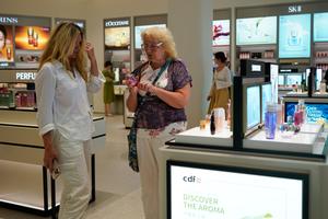 (250925) — CHENGDU, 25 septiembre, 2025 (Xinhua) — Turistas extranjeras compran perfume en la Tienda Libre de Impuestos del Centro de Chengdu, en Chengdu, en la provincia de Sichuan, en el suroeste de China, el 25 de septiembre de 2025. La primera tienda libre de impuestos del centro de Chengdu abrió el jueves en el distrito comercial de la calle Chunxi, incluida la zona libre de impuestos y la zona de impuestos pagados. (Xinhua/Xu Bingjie) (jg) (ah) (vf)