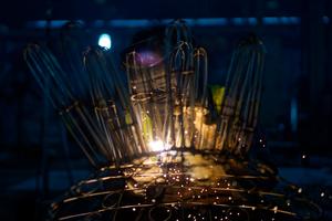 (250609) — ZIGONG, 9 junio, 2025 (Xinhua) — Imagen del 4 de junio de 2025 de un trabajador soldando el marco de una linterna en una fábrica, en Zigong, en la provincia de Sichuan, en el suroeste de China. Zigong, una ciudad en la provincia de Sichuan famosa por su artesanía centenaria de fabricación de linternas y sus ricos depósitos de fósiles de dinosaurios, ostenta los títulos de «Ciudad natal de los dinosaurios» y «Ciudad de las linternas». (Xinhua/Zhang Xiaoyu) (rtg) (oa) (vf)