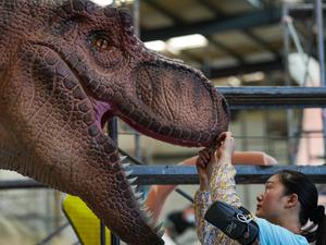 (250609) -- ZIGONG, 9 junio, 2025 (Xinhua) -- Imagen del 4 de junio de 2025 de una trabajadora instalando dientes en un dinosaurio animatrónico en una fábrica, en Zigong, en la provincia de Sichuan, en el suroeste de China. Zigong, una ciudad en la provincia de Sichuan famosa por su artesanía centenaria de fabricación de linternas y sus ricos depósitos de fósiles de dinosaurios, ostenta los títulos de "Ciudad natal de los dinosaurios" y "Ciudad de las linternas". (Xinhua/Wang Xi) (rtg) (oa) (vf)