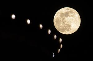 (260103) — BEIJING, 3 enero, 2026 (Xinhua) — Imagen del 3 de enero de 2026 de la luna sobre la ciudad de Yangzhou, en la provincia de Jiangsu, en el este de China. La primera superluna de 2026, caracterizada por la inusual proximidad cercana de la Luna a la Tierra, resultando en una apariencia más grande y brillante, se mostró en el cielo el sábado. (Xinhua/Meng Delong) (jg) (ra) (ce)