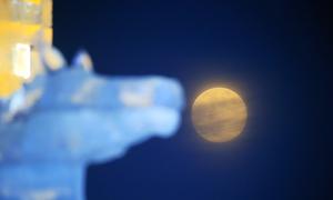 (260103) -- BEIJING, 3 enero, 2026 (Xinhua) -- Imagen del 3 de enero de 2026 de la luna sobre el Mundo de Hielo y Nieve, en la ciudad de Harbin, en la provincia de Heilongjiang, en el noreste de China. La primera superluna de 2026, caracterizada por la inusual proximidad cercana de la Luna a la Tierra, resultando en una apariencia más grande y brillante, se mostró en el cielo el sábado. (Xinhua/Zhang Shu) (jg) (ra) (ce)