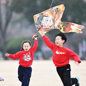 (250302) -- TENGZHOU, 2 marzo, 2025 (Xinhua) -- Imagen del 1 de marzo de 2025 de niños volando cometas en un parque, en la ciudad de Tengzhou, en la provincia de Shandong, en el este de China. (Xinhua/Li Zhijun) (oa) (da)