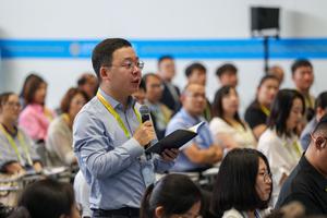 (250828) — TIANJIN, 28 agosto, 2025 (Xinhua) — Un periodista realiza preguntas durante la primera conferencia de prensa celebrada en el centro de medios de la próxima Cumbre de la Organización de Cooperación de Shanghai (OCS) 2025, en Tianjin, en el norte de China, el 28 de agosto de 2025. (Xinhua/Sun Fanyue) (da) (ra) (vf)