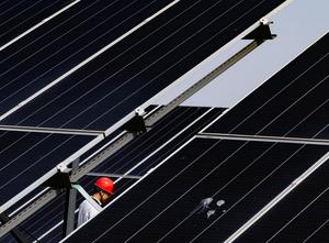 (260424) -- TIANJIN, 24 abril, 2026 (Xinhua) -- Imagen del 23 de abril de 2026 de un trabajador patrullando entre paneles fotovoltaicos en un parque industrial de economía circular, en la Nueva Area de Binhai de Tianjin, en el norte de China. Centrándose en la utilización de recursos y la recuperación de energía a partir de los residuos, el parque industrial de economía circular en la Nueva Area de Binhai de Tianjin, ha aprovechado las instalaciones de tratamiento medioambiental bien consolidadas para mejorar su sistema circular, impulsando el crecimiento verde para el desarrollo de alta calidad de la región. (Xinhua/Lan Hongguang) (jg) (ra) (vf)