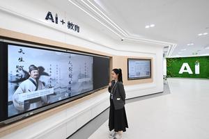 (250421) -- TIANJIN, 21 abril, 2025 (Xinhua) -- Imagen del 18 de abril de 2025 de una empleada mostrando productos de Inteligencia Artificial aplicados al campo de la educación en la sucursal de Tianjin de iFLYTEK, en Tianjin, en el norte de China. En los últimos años, un grupo de empresas basadas en tecnología digital han fomentado su desarrollo en un parque industrial de economía digital en Tianjin, inyectando impulso al desarrollo de alta calidad de la economía local. (Xinhua/Sun Fanyue) (rtg) (ah) (vf)