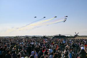 (251018) — TIANJIN, 18 octubre, 2025 (Xinhua) — Helicópteros del equipo de acrobacias aéreas Fenglei del Ejército Popular de Liberación de China realizan una presentación durante la séptima Exposición de Helicópteros de China, en la municipalidad de Tianjin, en el norte de China, el 18 de octubre de 2025. La exposición abrió sus puertas al público general el sábado. (Xinhua/Sun Fanyue) (oa) (da)