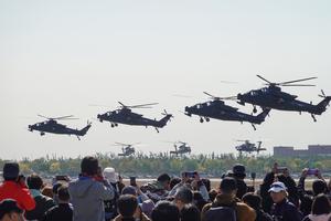CHINA-TIANJIN-EXPOSICION DE HELICOPTEROS-DIA DE PUERTAS ABIERTAS-EQUIPO DE ACROBACIAS AEREAS FENGLEI