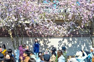 (260404) -- TIANJIN, 4 abril, 2026 (Xinhua) -- Turistas disfrutan de las flores de manzano silvestre mientras visitan el área urbana histórica de Wudadao, en Tianjin, en el norte de China, el 4 de abril de 2026. Un festival de flores de manzano silvestre se está llevando a cabo en el área urbana histórica de Wudadao de Tianjin del 3 al 12 de abril, dando un impulso la industria cultural y turística local. (Xinhua/Zhao Zishuo) (jg) (da)