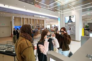 (251128) -- TIANJIN, 28 noviembre, 2025 (Xinhua) -- Clientes extranjeros se prueban gafas para el sol en una tienda libre de impuestos del centro, en la municipalidad de Tianjin, en el norte de China, el 28 de noviembre de 2025. La municipalidad de Tianjin abrió el viernes su primera tienda libre de impuestos en el centro. (Xinhua/Sun Fanyue) (rtg) (ra) (ce)