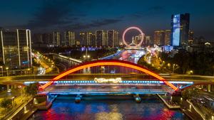 (250607) -- TIANJIN, 7 junio, 2025 (Xinhua) -- Imagen tomada con un dron el 6 de junio de 2025 de una vista nocturna a lo largo del río Haihe, en Tianjin, en el norte de China. Tianjin ha mejorado las instalaciones de iluminación de 216 edificios, 13 puentes, 8,2 kilómetros de riberas y 7 muelles a lo largo del río Haihe desde principios de este año. La iluminación paisajística a lo largo del río ha mejorado enormemente, ofreciendo una vista nocturna distintiva de la ciudad. (Xinhua/Zhao Zishuo) (oa) (da)